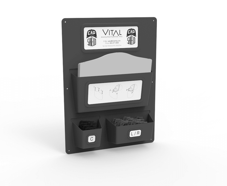 To help businesses integrate the Cap Guard product into their daily operations, a commercial wall mount unit was developed to store and dispense the Cap Guard components.